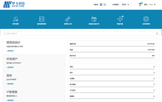 夢飛主機的管理面板簡單易用,功能齊全。您可以很輕松地對主機進行添加域名、備份數(shù)據(jù)、添加數(shù)據(jù)庫等操作。我們還提供詳盡的FAQ圖文教程,助您輕松上手